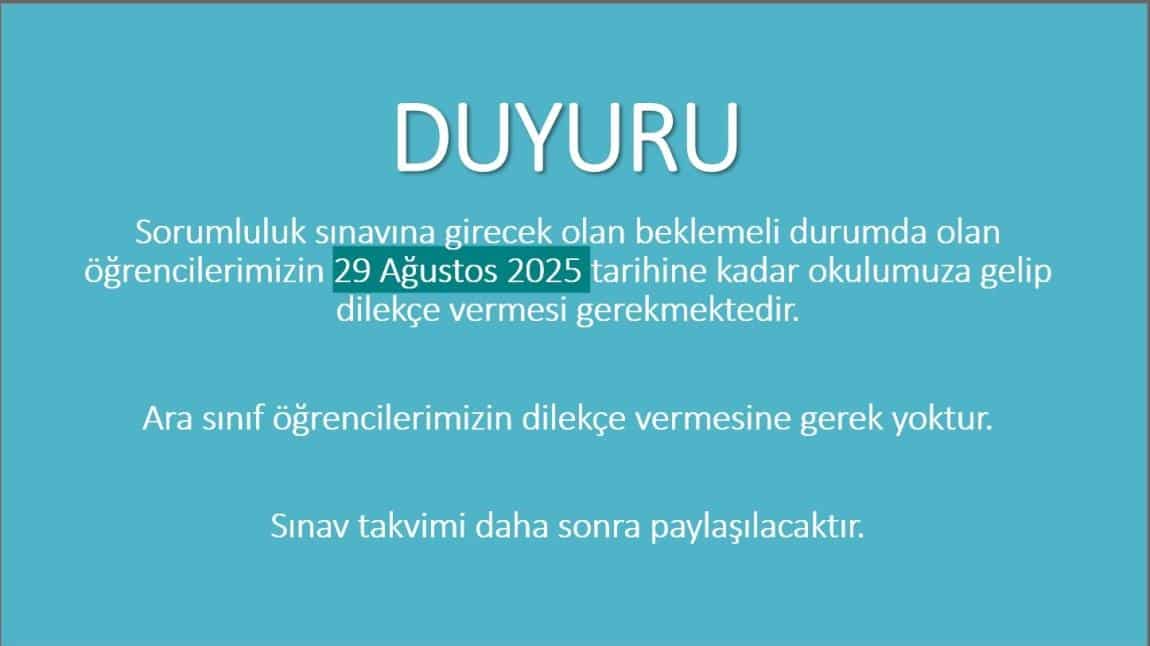 2025 Eylül Dönemi Sorumluluk Sınavı Duyurusu